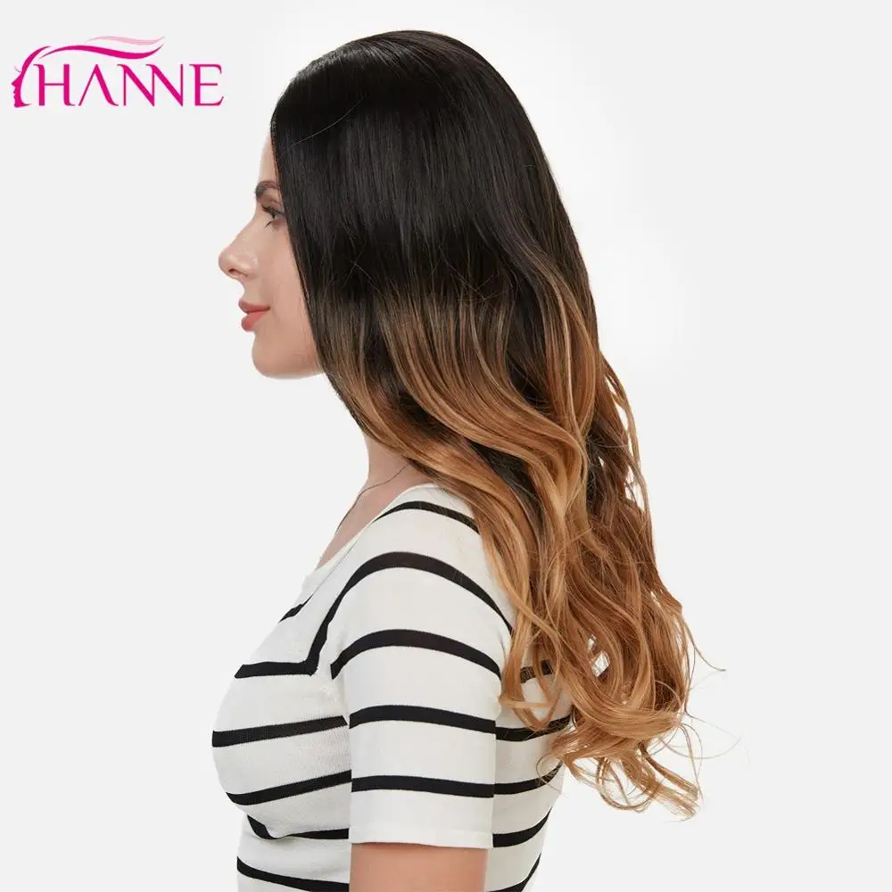 ORIGINAL HANNE Long Synthetic Wavy Wigs Ombre Brown Blonde/Grey Heat Resistant Fiber Hair For Black/White Wo