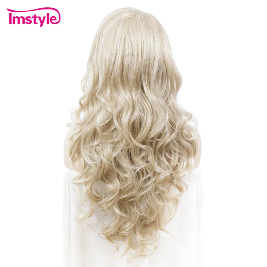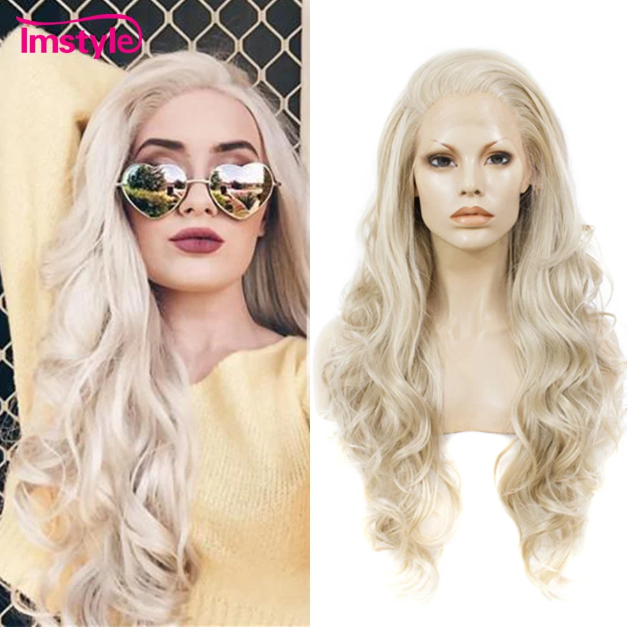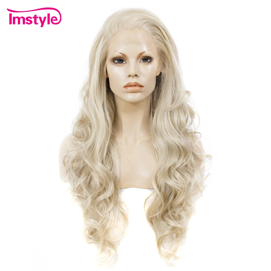 BEST QUALITY Imstyle Ash Blonde Lace Front Wig Synthetic Hair Long Wavy Wigs For Women Glueless High Temperature
