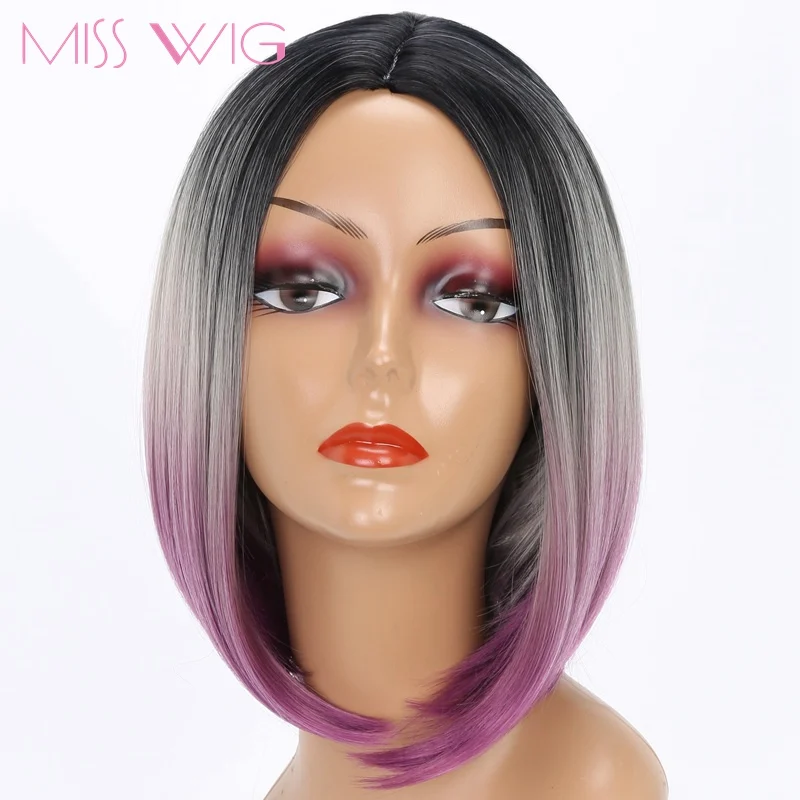 MISS WIG Pink Ombre Black Blonde Blue Gray Wig Long Straight Hair Short Wigs 230g for Black Women S
