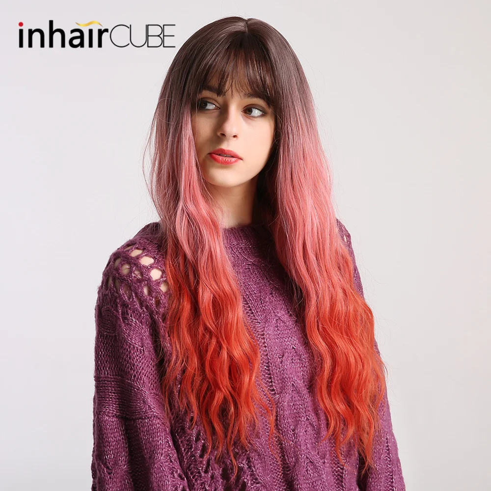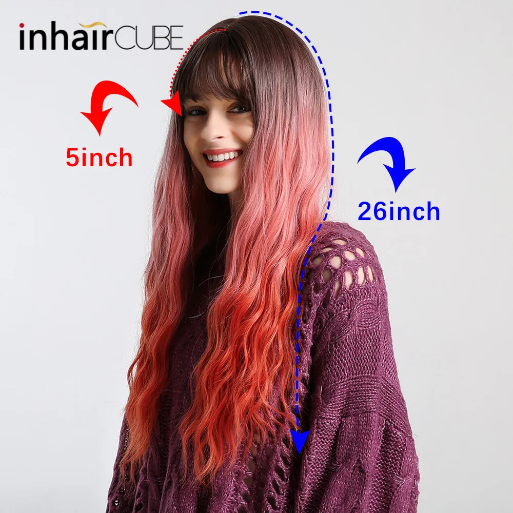 REVIEW TOP SELLER Inhair Cube Lady Wig Dark brown root Ombre Red Long Wavy Heat Resistant Synthetic Hair Wigs For Wom