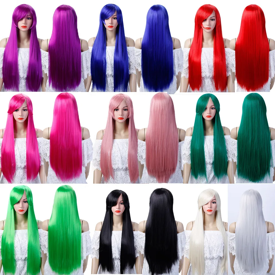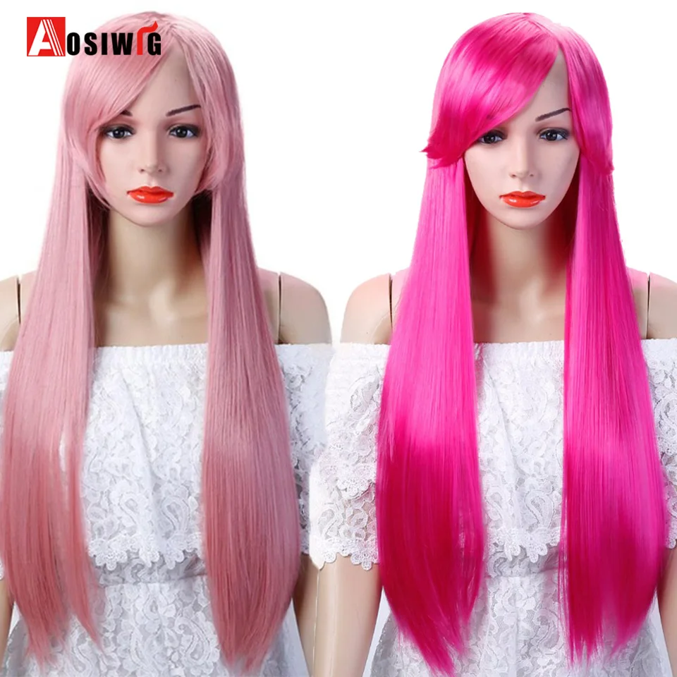 HIGH QUALITY AOSIWIG Long Straight Cosplay Wig Red Green Puprle Pink Black Blue Sliver Gray Brown 75 Cm Syntheti