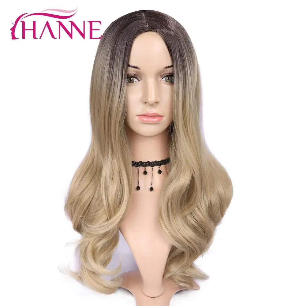 HANNE Long Wavy Synthetic Wigs Ombre Blonde/Grey/Brown/Pink Natural Wig High Temperature Fiber Wigs