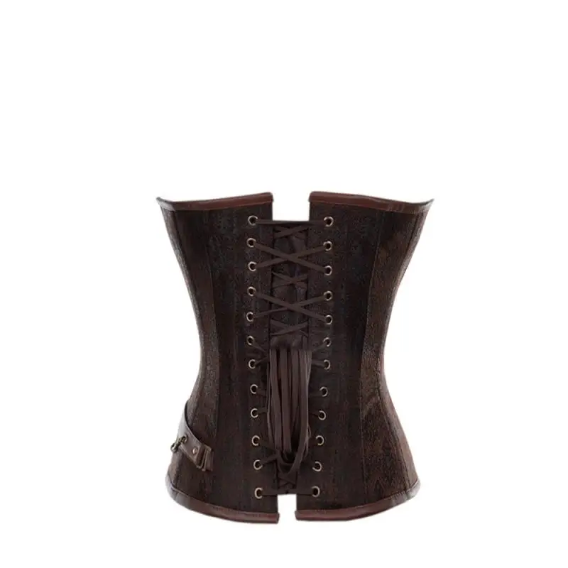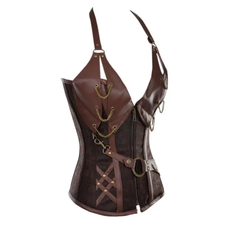 Retro Bustiers Corsets 14 Steel Bone Steampunk Burlesque Black Brown Leather Halter Bustiers Corset