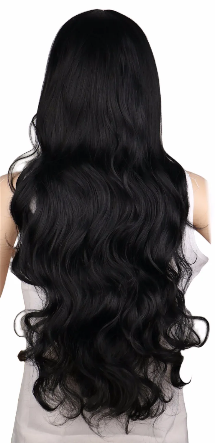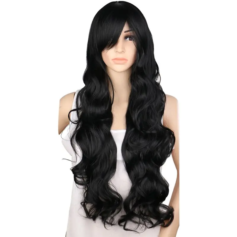 QQXCAIW Long Curly Cosplay Wig Party Women Natrual Black 70 Cm High Temperature Synthetic Hair Wigs