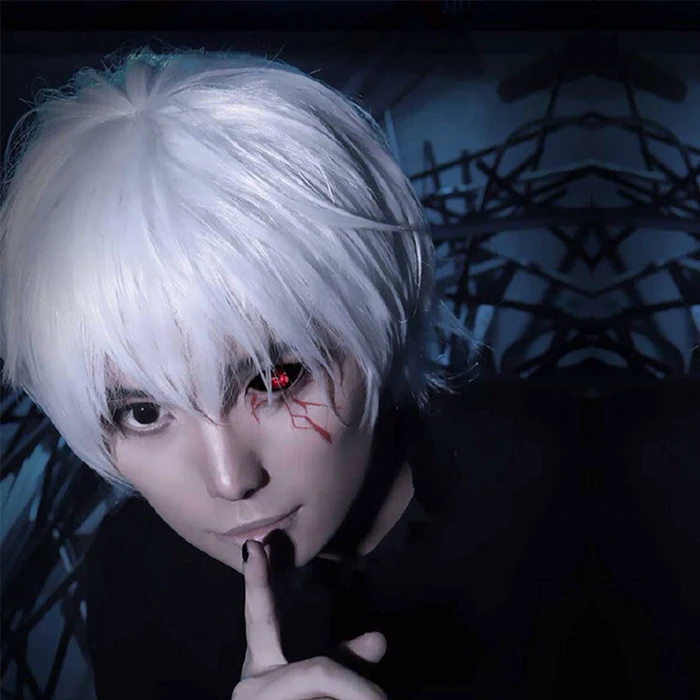 High Quality Tokyo Ghoul Ken Kaneki Wigs 30cm Silver Heat Resistant Synthetic Hair Cosplay Wig + Ma