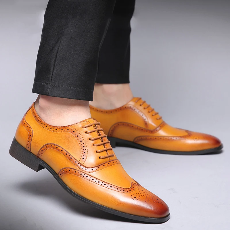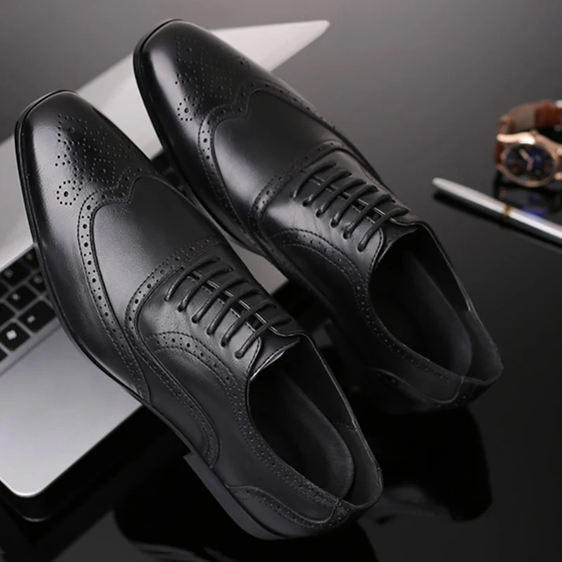 Merkmak Retro Bullock Design Men Business Formal Shoes Classic Pointed Toe Leather Shoes Men Oxford