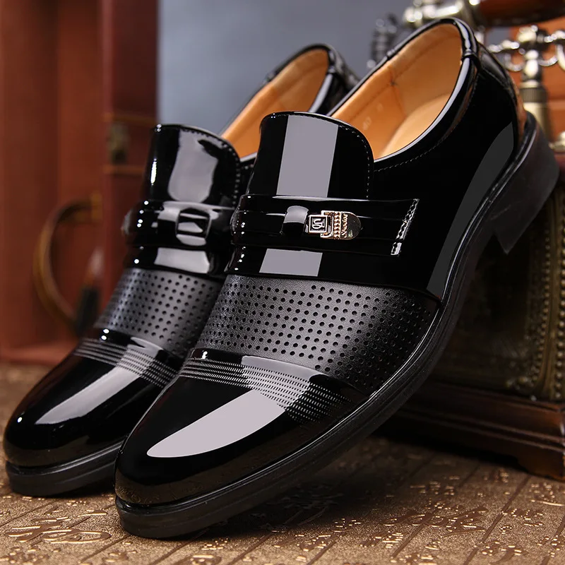 HOT Sale Men Slip on Dress Shoes Business Patent Leather Oxfords Formal Shoes Fashion Pointed Toe Breathable