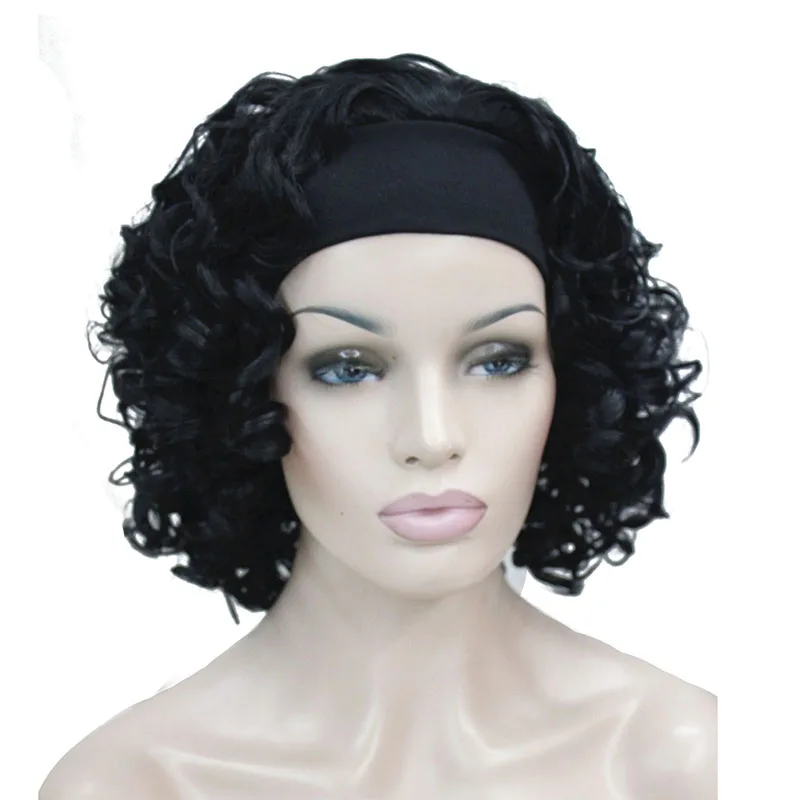 Best Quality StrongBeauty Short Curly Black Synthetic HEADBAND Wig for Women