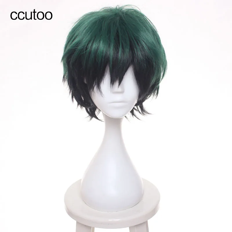 ccutoo 30cm Green Black Mix Short Shaggy Layered Fluffy Synthetic Hair My Hero Boku no Hero Academi