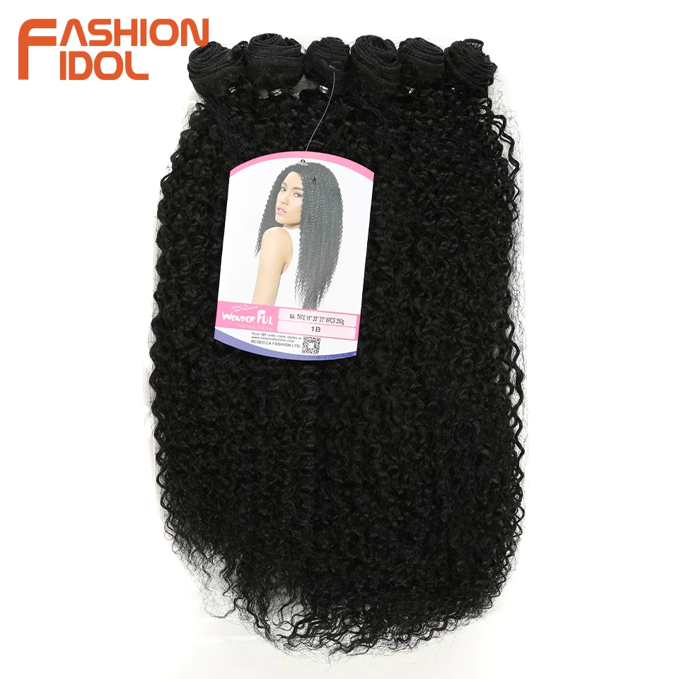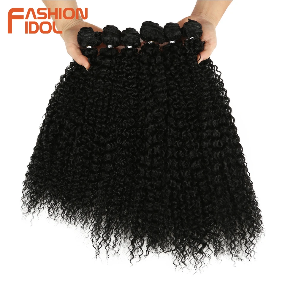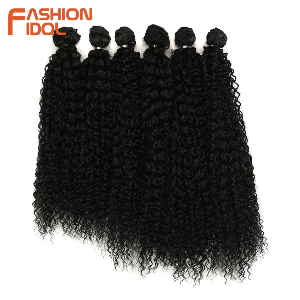 ORIGINAL FASHION IDOL Afro Kinky Curly Synthetic Hair Extensions Bundles Ombre 6Pieces Heat Resistant Weave