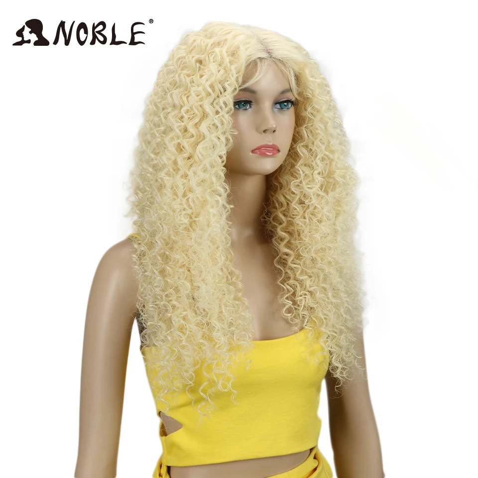 Best Noble Hair 26"Inch Synthetic Lace Front Black Wig African American Long Kinky Curly Heat Resistant