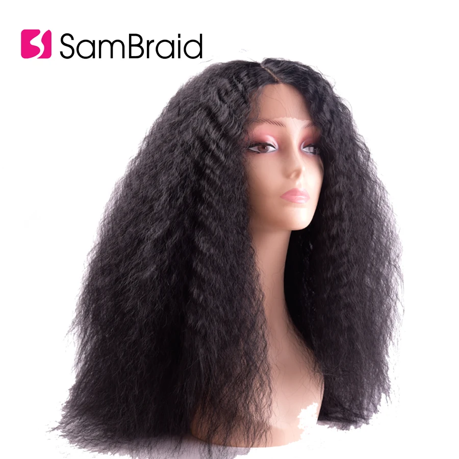 BEST Sambraid Hair Synthetic Lace Front Wigs Kinky Curly Medium Black Synthetic Wig for African Hairstyl