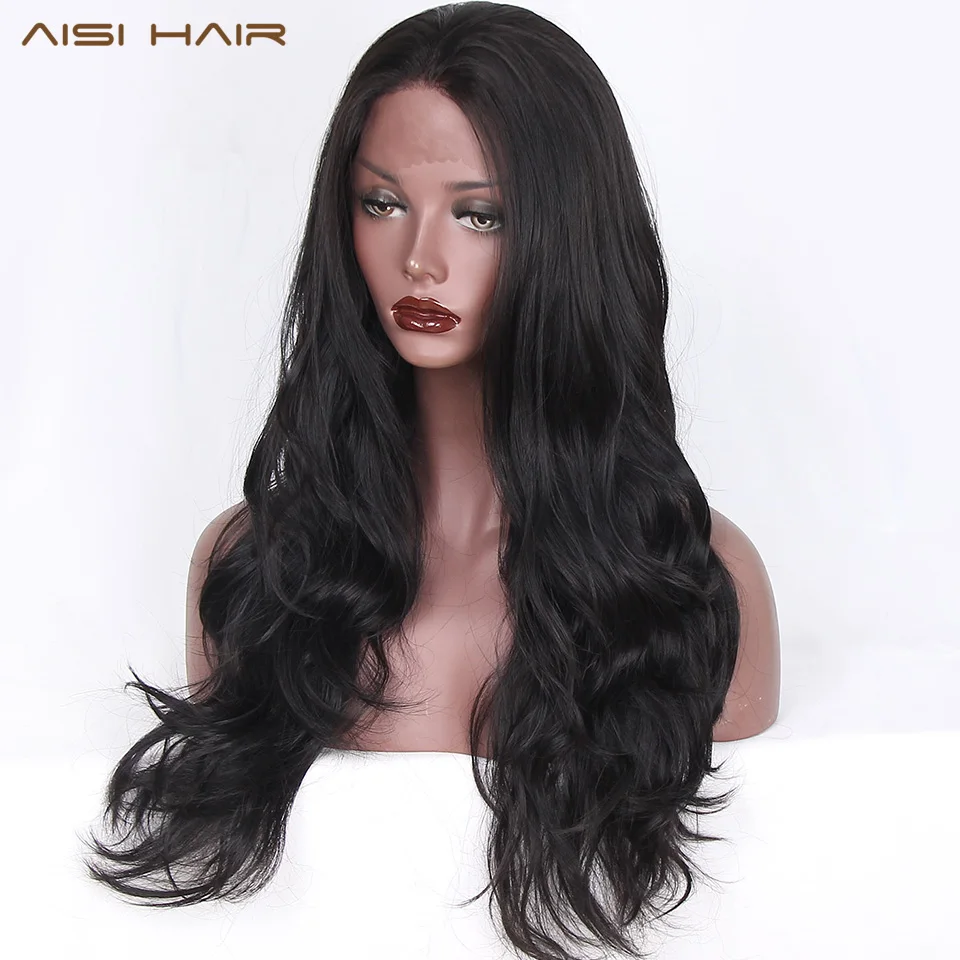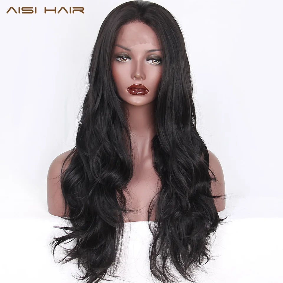 Best Seller AISI HAIR Black Long Wavy Wig Synthetic Lace Front Wigs for Black Women Natural Part Heat Resistant