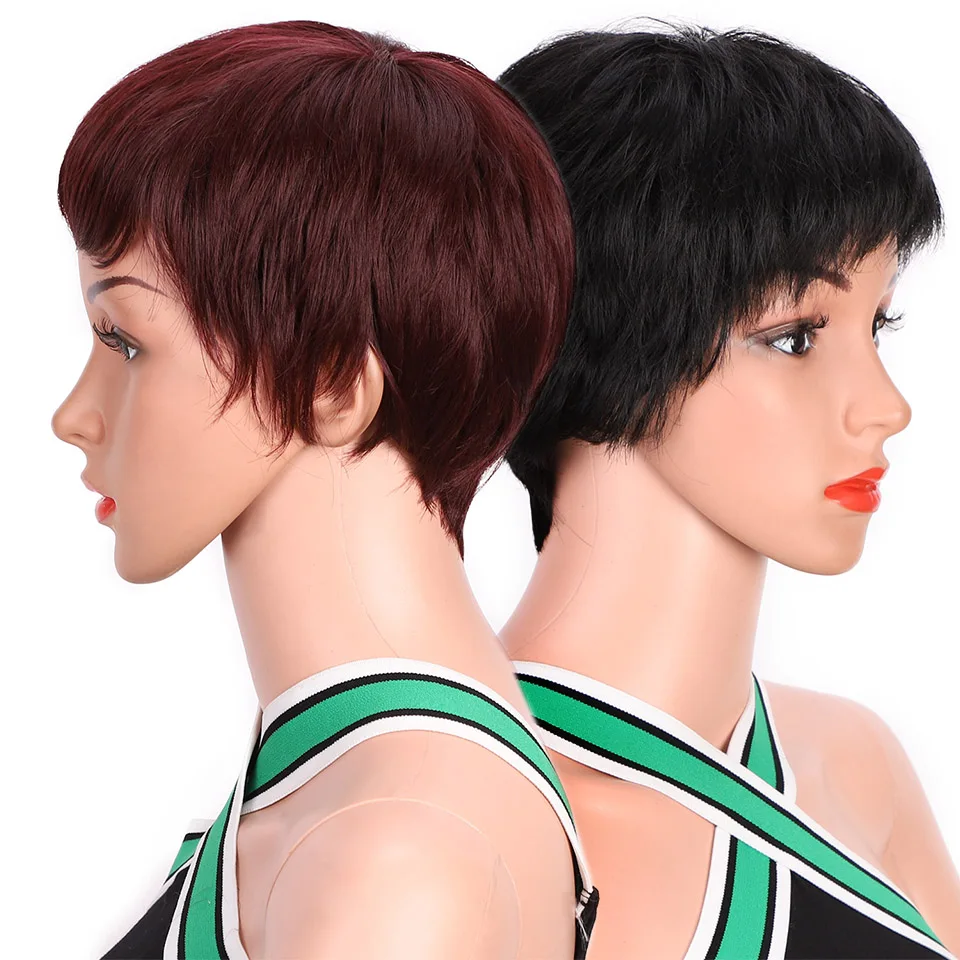 Best Seller Short Black Wigs for Women Natural Synthetic Red Pixie Cut Wig Costume Cosplay Party Hair Wig Brown