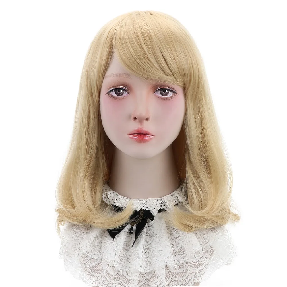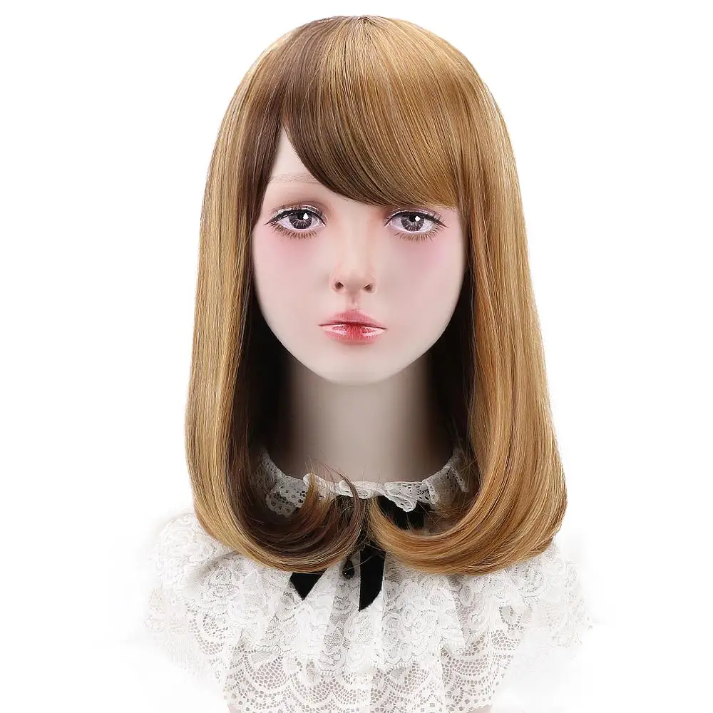Free Beauty 18" Long Wavy Synthetic Natural Blonde Ash Brown Blond Hair Wigs with Air Bangs for Wom
