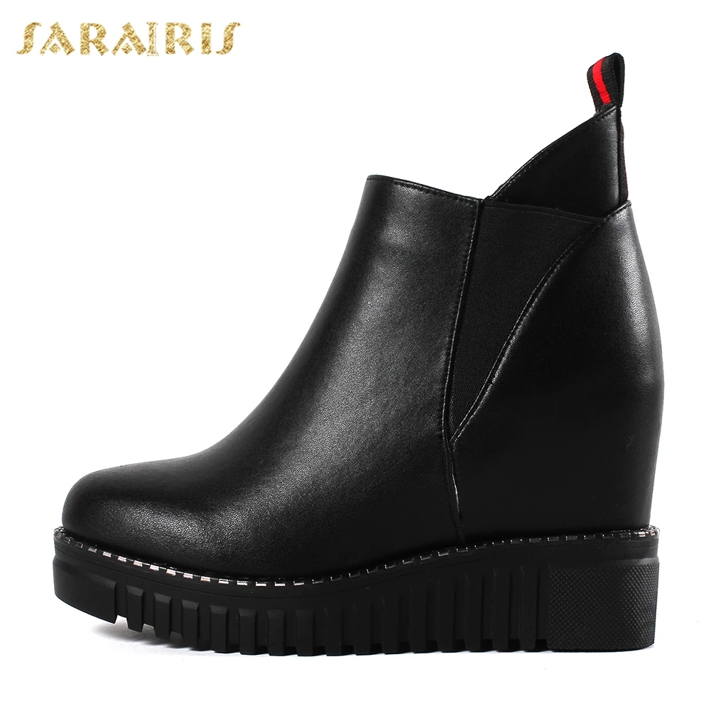 SARAIRIS 2018 Cow Leather Large Size 32-40 Elastic Band Woman Vulcanize Shoes Women Platform Increa