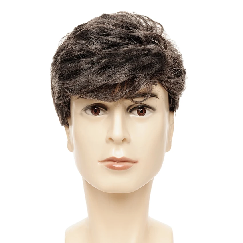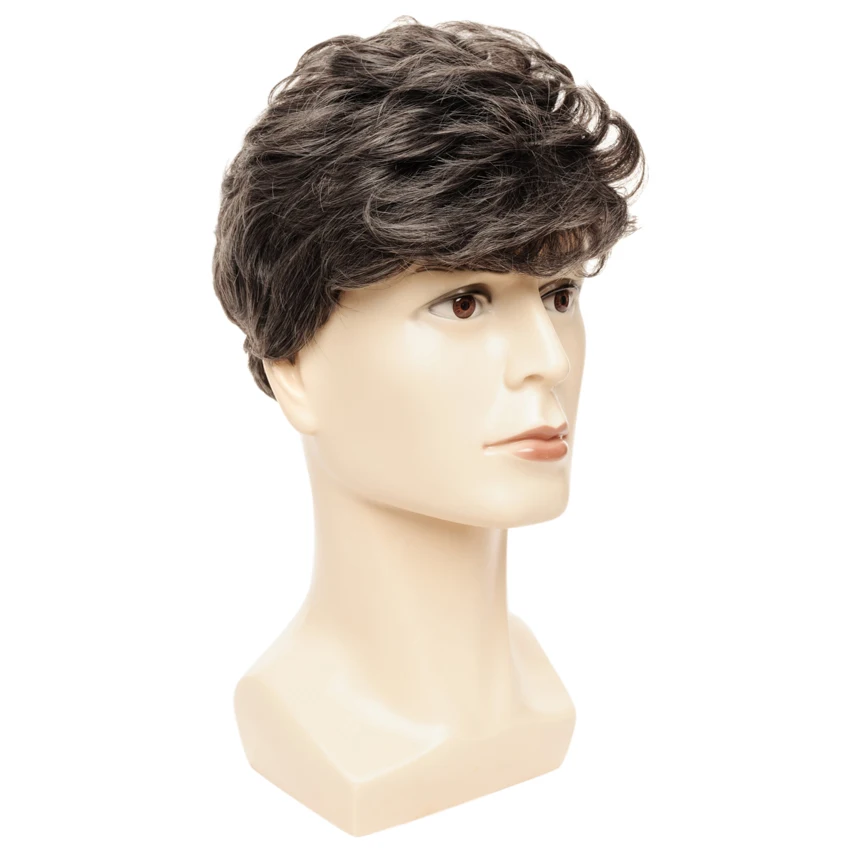 Best Quality Short Male Wigs for Business Man Curly Wig Mixed Color Side Part Male Synthetic Hair Heat Resistant