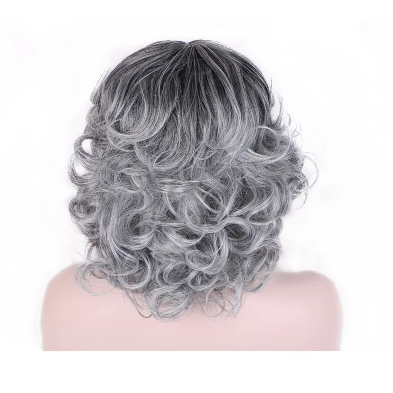WoodFestival Grey Black Short Wigs for Women Heat Resistant Hair Cosplay Synthetic Wig Curly