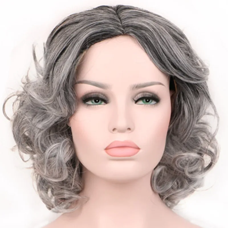 ORIGINAL WoodFestival Grey Black Short Wigs for Women Heat Resistant Hair Cosplay Synthetic Wig Curly