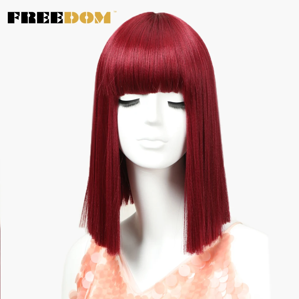 BEST SELLER FREEDOM Womens Synthetic Hair Wigs 12 Inch Blonde Wig Short Straight Hair Wig Heat Resistant Red Co