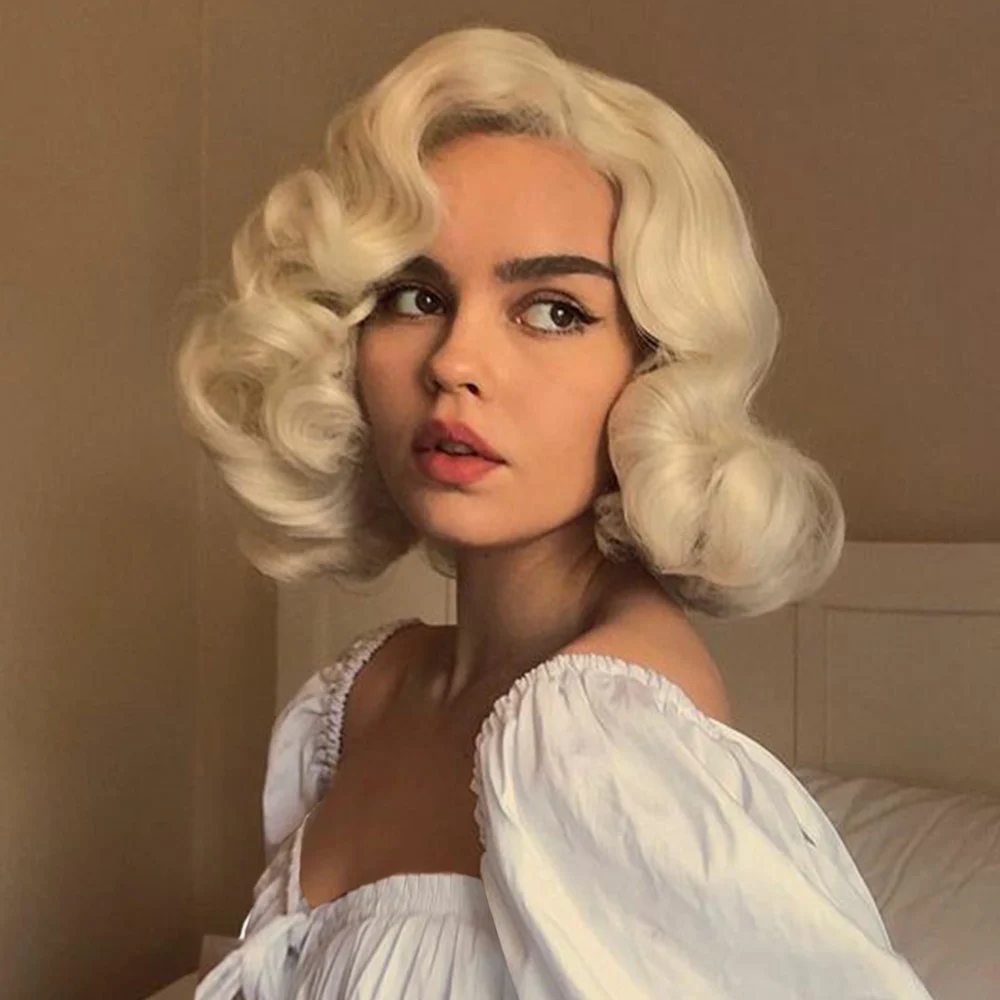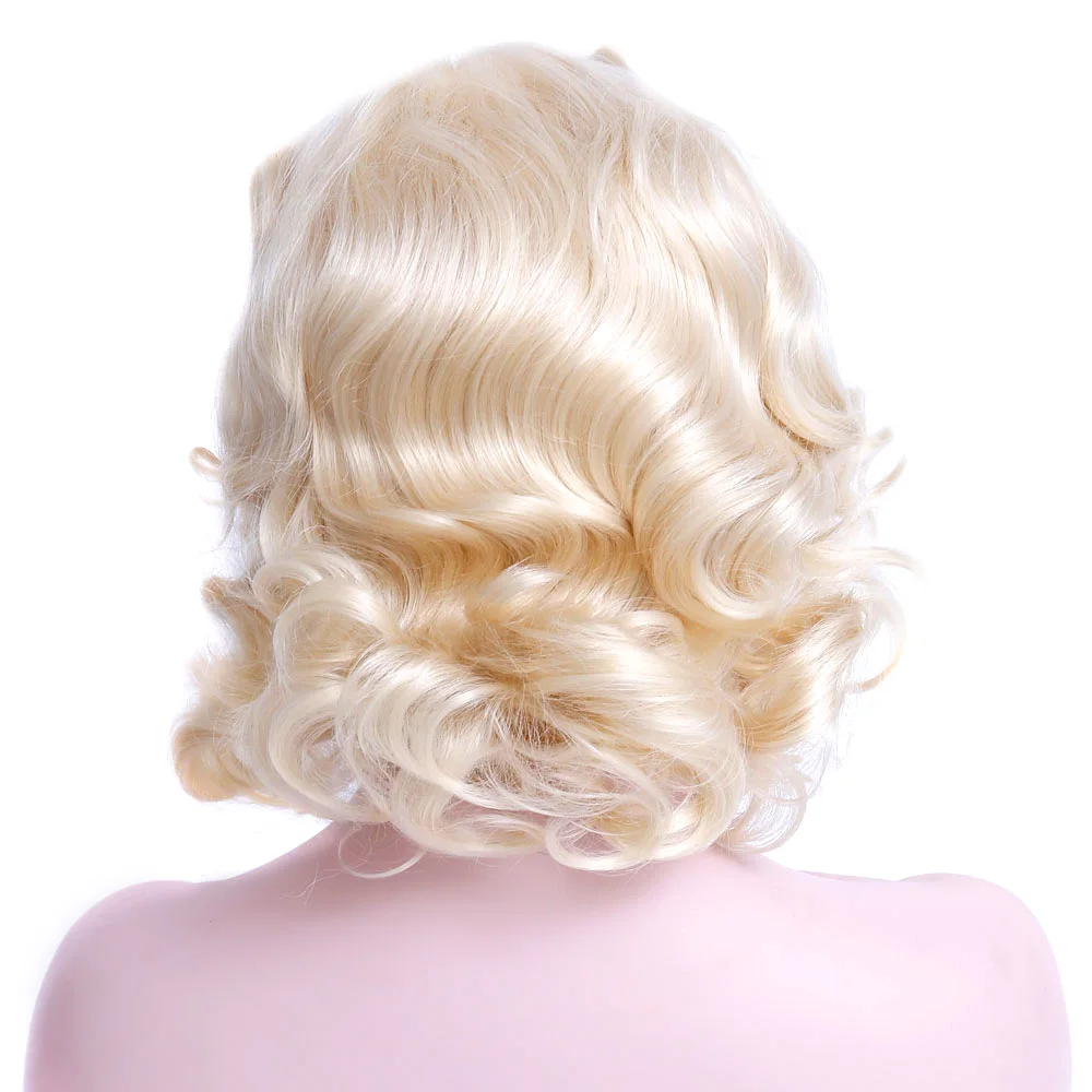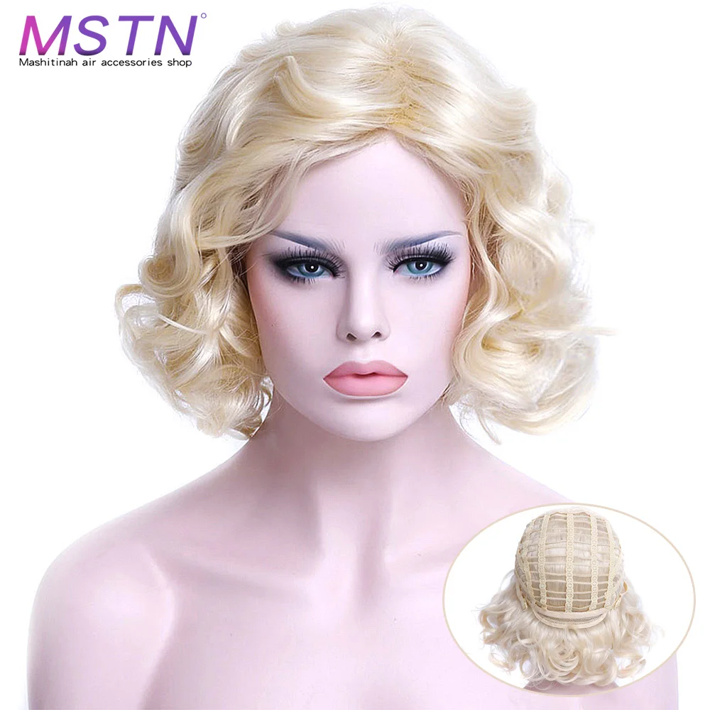 MSTN Women's Afro Retro Blonde Short Synthetic Cosplay Wig Like Marilyn Monroe High Temperature Fib