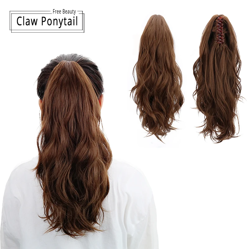 18"Synthetic drawstring ponytail Claw Clip In Hair Extensions Hairpiece Natural Curly Clip In Human