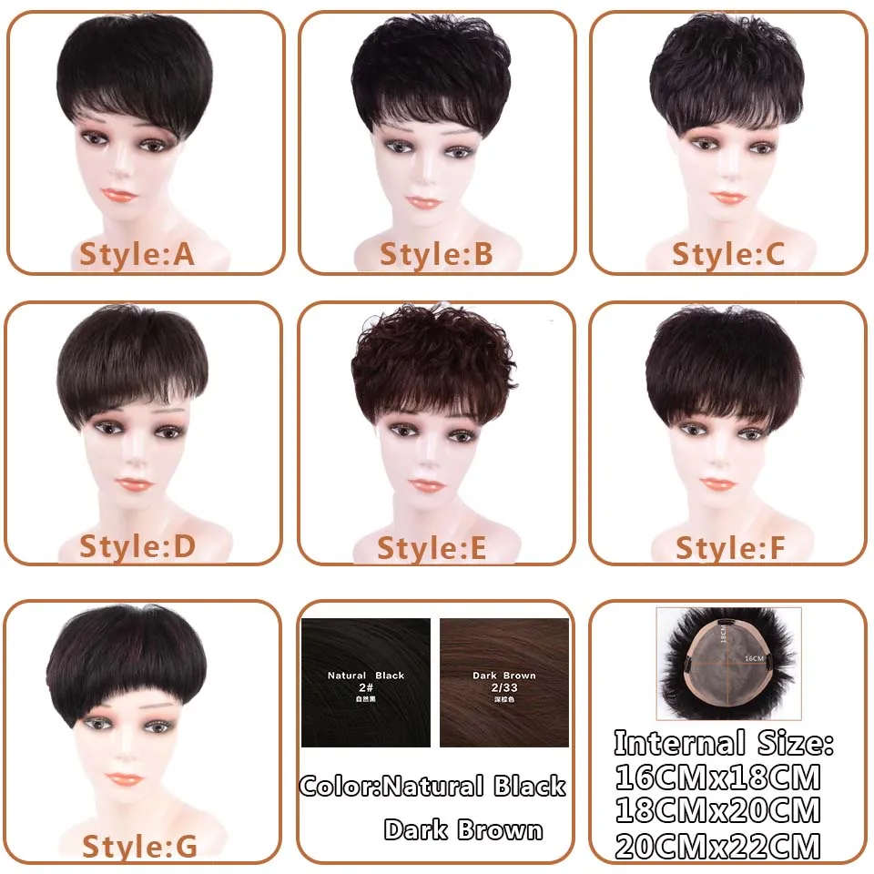 JINKAILI Durable Hairpieces Lace PU Replacement Top Head Toupees Synthetic Straight Black Brown Cli