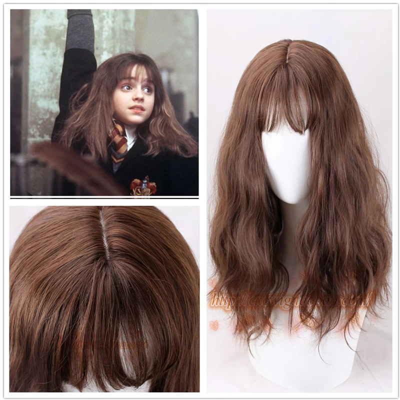 Movie Hermione Jean Granger Brown Wavy Curly Synthetic Hair Cosplay Costume Wigs + Wig Cap